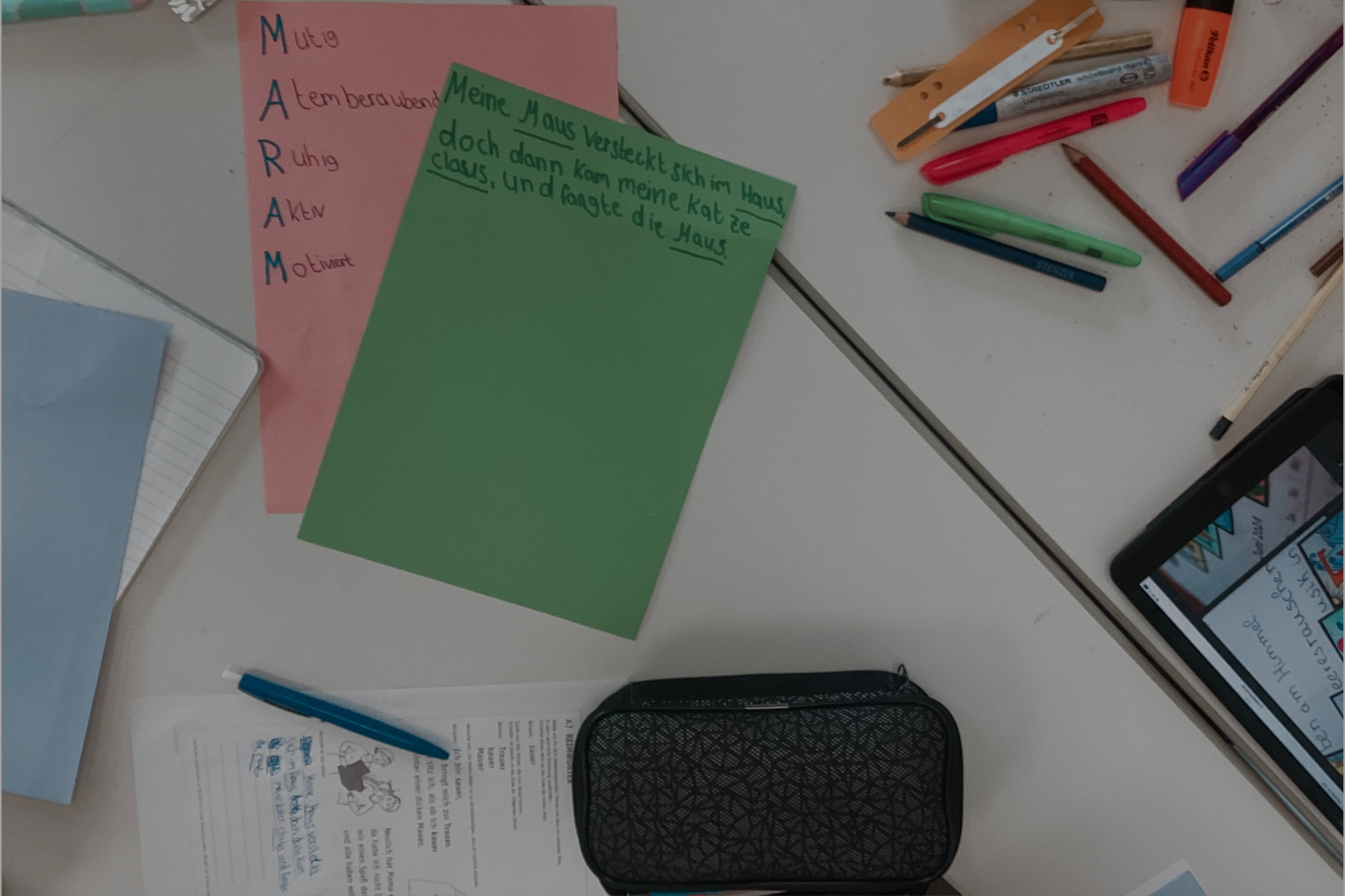 In diesem Projekt waren die Schüler*innen draußen unterwegs, sammelten Naturmaterialien wie Blätter, Steine oder Äste und gestalteten daraus kleine Kunstwerke. Dabei ging es nicht um Leistung oder Bewertung, sondern darum, kreativ zu sein und sich zu entspannen. Viele fanden das sehr beruhigend. Eine Teilnehmerin sagte: „Es war schön, einfach mal draußen zu sein und was mit den Händen zu machen.“ Materialien wie Schere und Stifte waren mitzubringen.