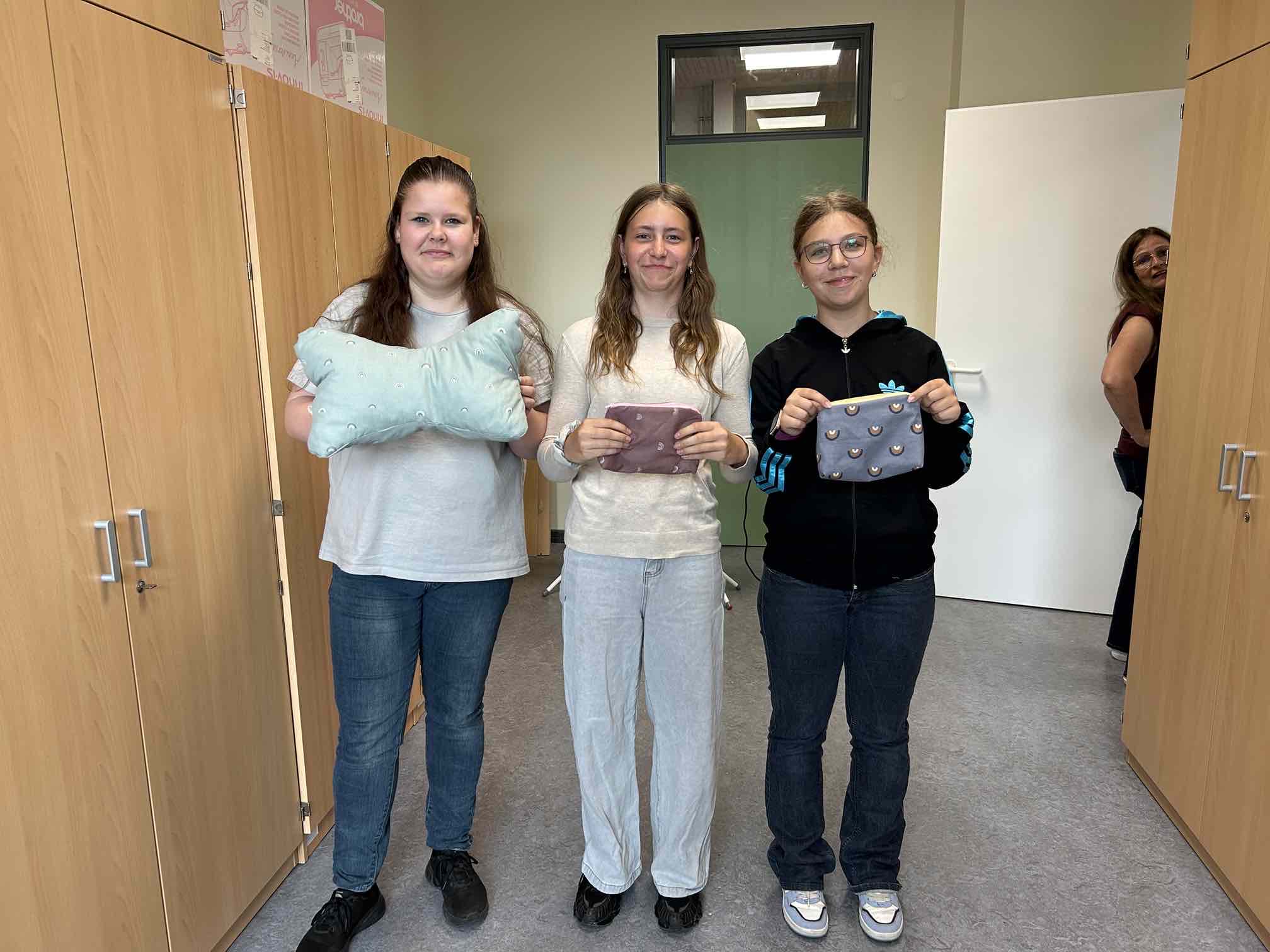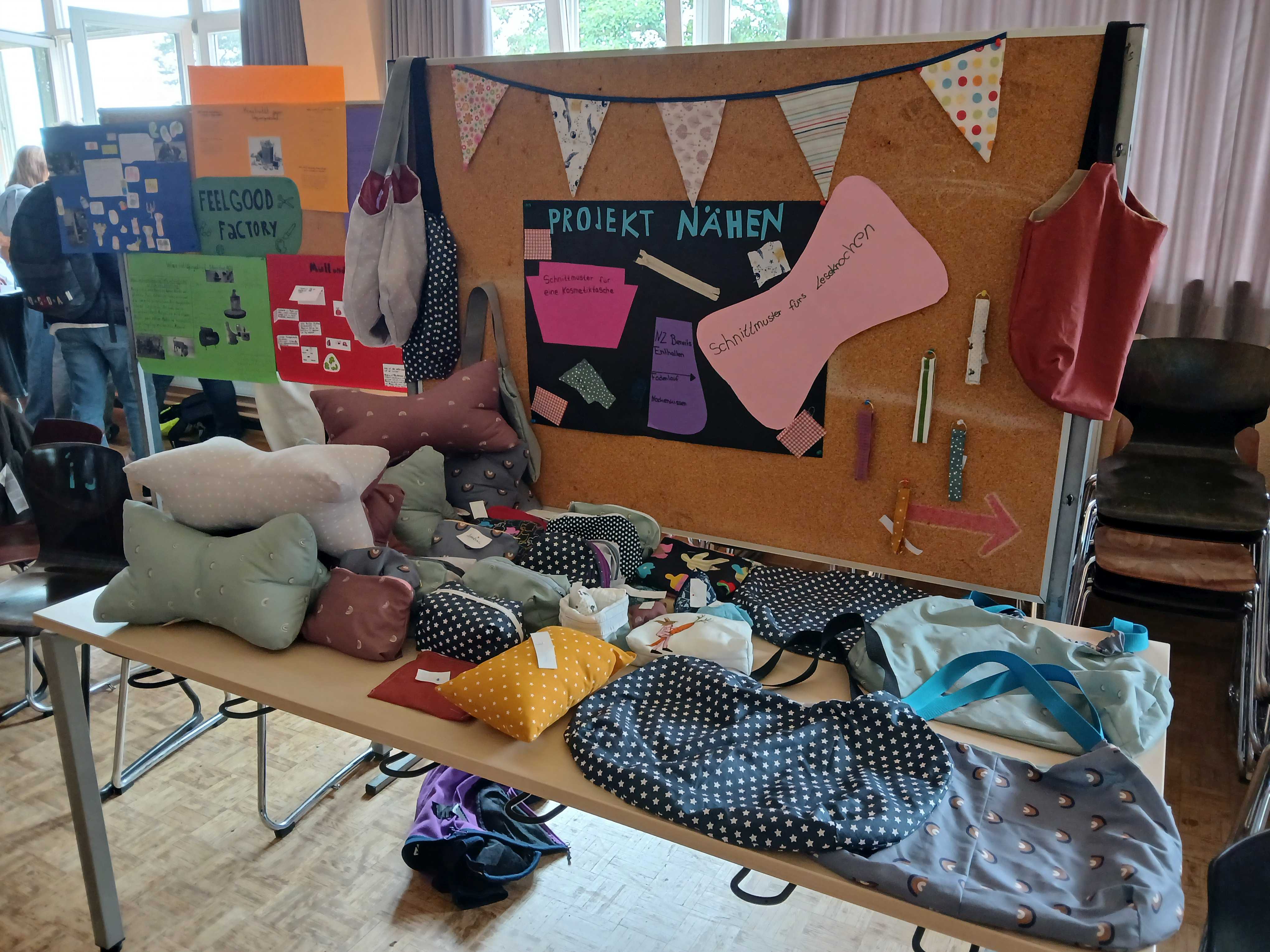 Das Projekt „Starke Verbindung – kreative Nähprojekte mit Kopf und Körper“, geleitet von Frau Wojewsky und Frau Lingemann, bezieht sich auf das Erlernen des Nähens. Jede Klassenstufe kann daran teilnehmen. Am Anfang der Woche lernen die Schülerinnen und Schüler den Umgang mit der Nähmaschine und nähen zunächst ein Nadelkissen. Danach schauen sie, wie gut sie zurechtkommen, und dürfen anschließend selbst entscheiden, was sie als Nächstes nähen möchten.