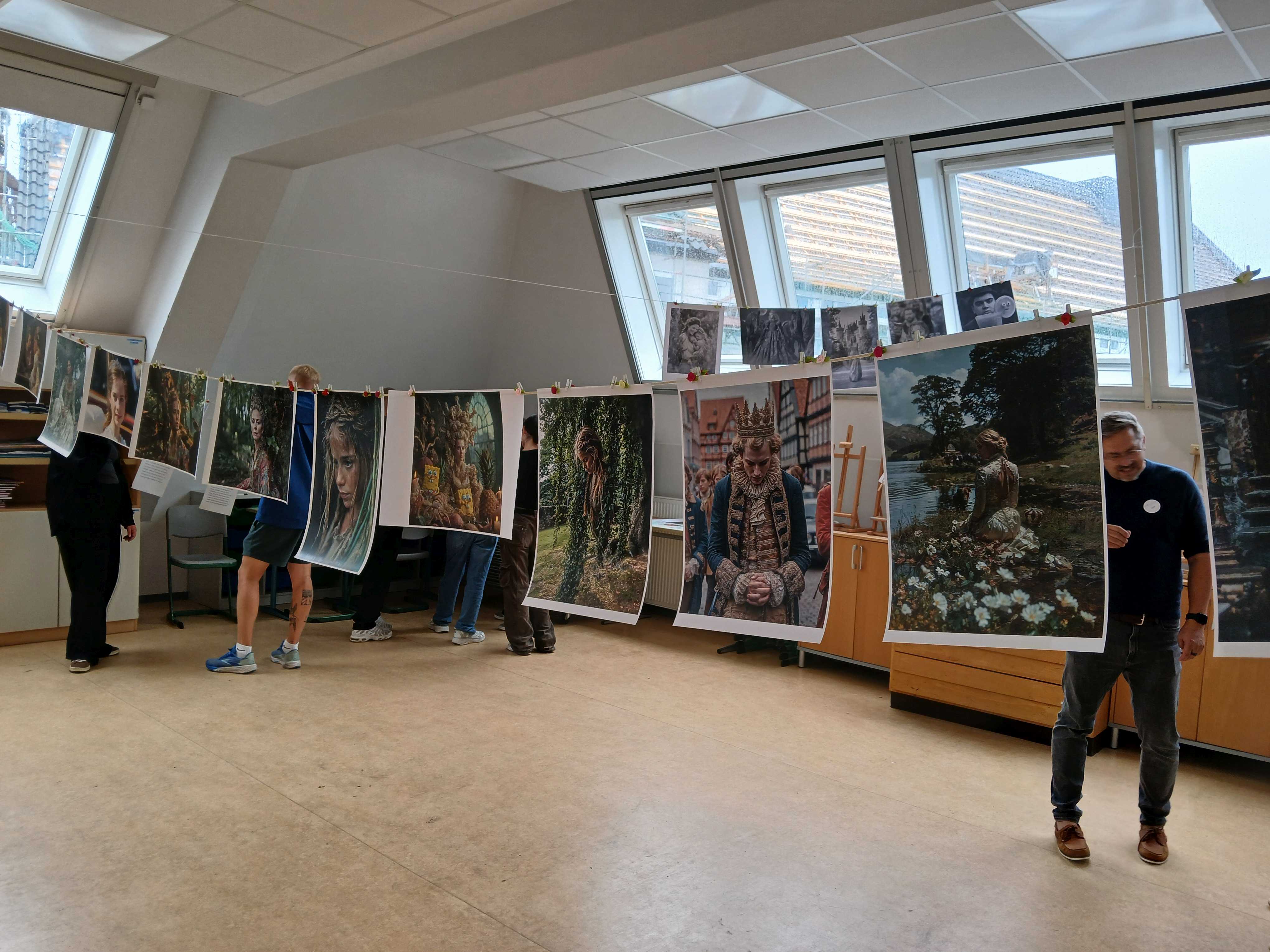 Unter der Leitung von Frau Dr. Dannhausen und Frau Socher beschäftigten sich rund 14 Schüler und Schülerinnen mit dem Thema KI - Fotos und Caroline Mathilde. Mit Hilfe von dem Künstler Roman Thomas lernen sie, wie man Kunst mit KI verbinden und erstellen kann. Auch ein Besuch im Celler Schloss durfte nicht fehlen, denn das half den Lernenden die Kunst und die Geschichte besser zu verstehen. Die Stimmung war konzentriert und interessiert.