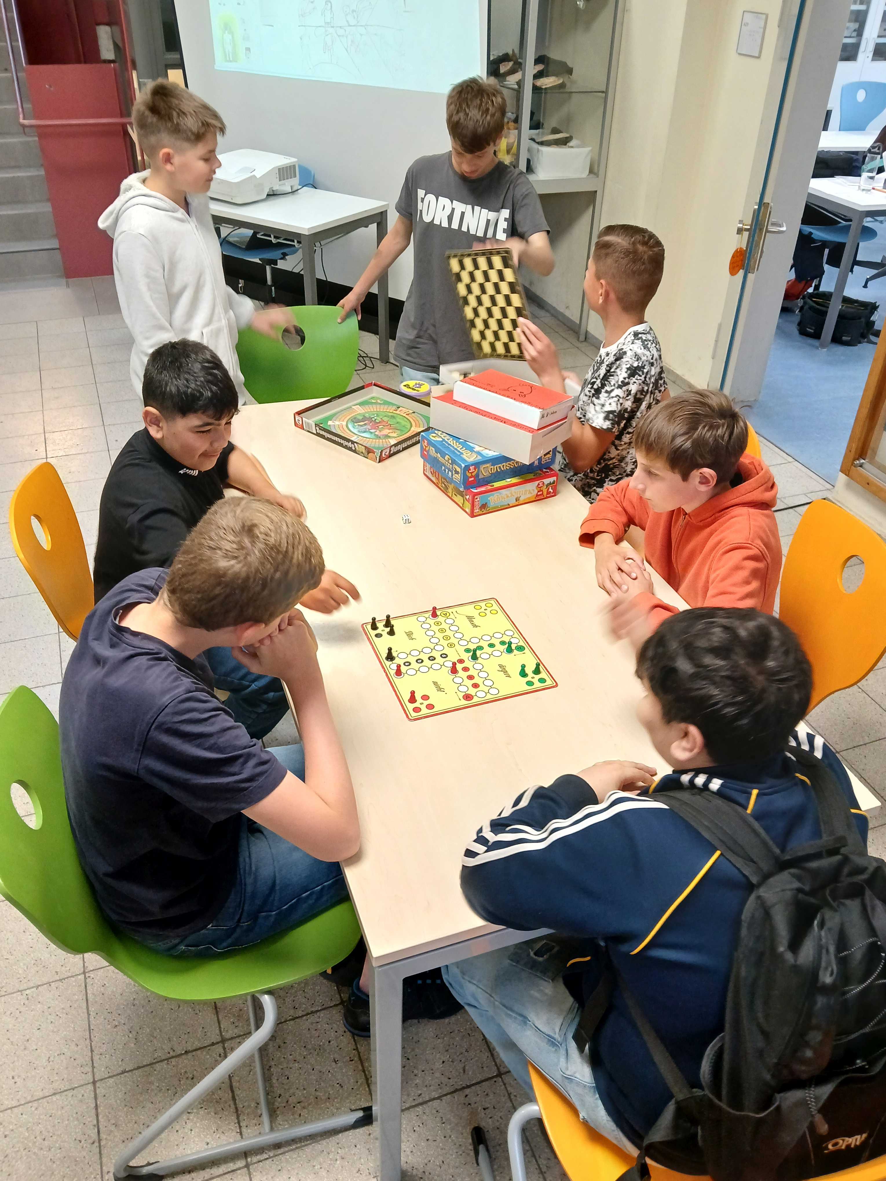 Hier war weniger Bewegung, dafür viel Kreativität gefragt. Die Teilnehmer*innen lernten verschiedene Brettspiele kennen, spielten sie in Gruppen und erfanden am Ende eigene Spiele. Diese wurden dann der Gruppe vorgestellt. Viele fanden es schön, mal in Ruhe mit anderen zu spielen und auch selbst etwas zu erfinden. Materialien wie Papier, Stifte und Schere mussten mitgebracht werden, aber das Projekt war grundsätzlich kostenlos.