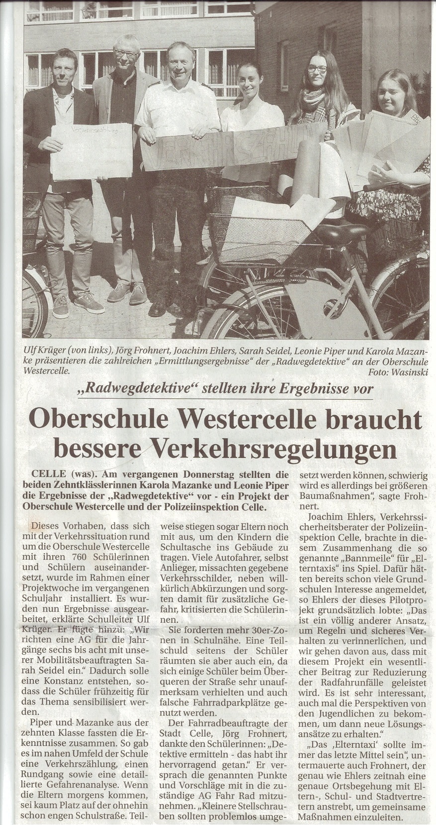 (Celler Kurier 21. August 2016) „Radwegdetektive“ an der Oberschule Westercelle