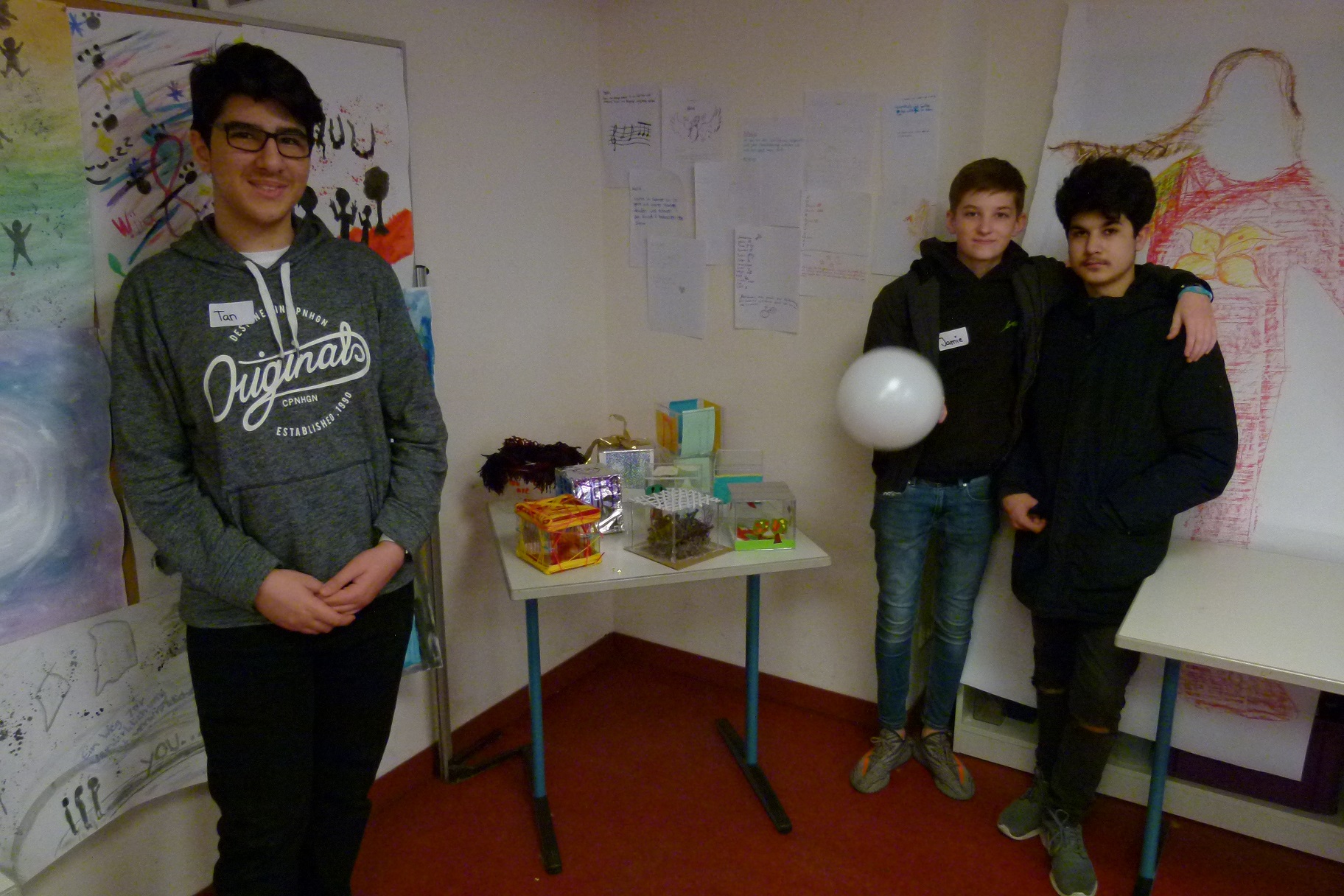 Die Besucher schwärmten anschließend aus, um die Ergebnisse der Projektwoche zu begutachten, die die Schüler in den Tagen zuvor erarbeitet hatten. Das Motto der Woche lautete „Das sind wir – Eine Schule in Europa“, was die multikulturelle Ausrichtung der Schule mit zahlreichen Austauschprogrammen unterstreicht. So beschäftigten sich mehrere Gruppen mit europäischen Ländern und präsentierten Informationen über Kultur, Geschichte und Sprache oder setzten das Thema künstlerisch um, indem sie Schuhkartons mit landestypischen Basteleien gestalteten. Die Kreativität der Schüler wurde auch in den Kunstprojekten gefördert, in dem aus Müll Kunstobjekte gebastelt wurden, und in Zusammenarbeit mit dem Kunstmuseum lernten die Schüler das Leben und die Werk Otto Pienes kennen. Mit der Geschichte Celles setzten sich die Schüler ebenfalls auseinander und beleuchteten unter anderem das Mittelalter oder die Geschichte der jüdischen Bevölkerung Celles zur Zeit des Nationalsozialismus.
