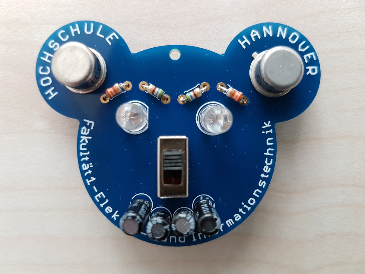 Als die Batterie eingesetzt wurde, kam der spannende Augenblick: Blinkt der Bär? Und tatsächlich – bei vielen Schülern blinkten die Augen die rot, grün oder blau. Für die anderen Schüler hieß es, Fehler zu suchen, und das war echt schwierig. Aber am Schluss hatten alle und sogar die Lehrer einen blinkenden Bären.
